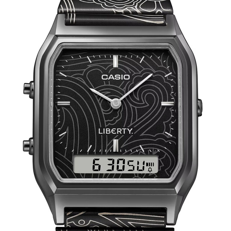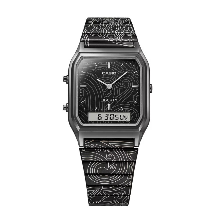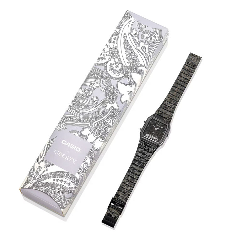 CASIO CLASSIC AQ-230EBLT-1AJR クラシカルな角型ケースのAQ-230と英国老舗デザインハウスのリバティとのコラボ
