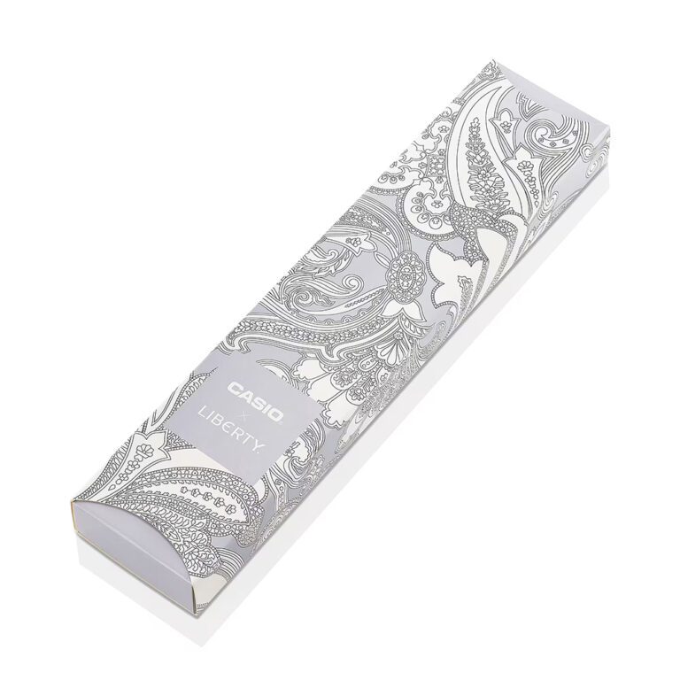 さらに、中留と裏蓋にはリバティのロゴを刻印し特別感を演出。ペイズリーファンファーレをあしらったスペシャルパッケージも付いています。