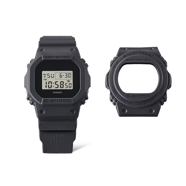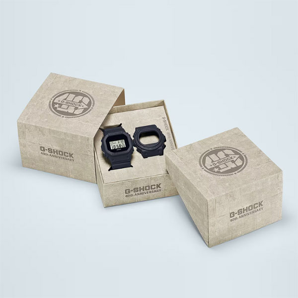 サイドボタンにはスターマークを刻印し、ベゼルとバンドにはバイオマスプラスチックを採用しました。バックライト、ケースバックにはG-SHOCK25th、30th、35thのロゴもデザインを手がけたエリック・ヘイズの手による40thロゴを、遊環には“40”を表現するスターマークを刻印しました。
