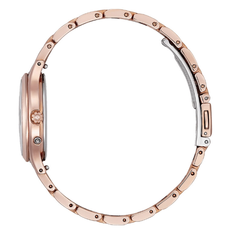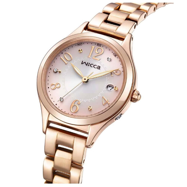 みずみずしく透明感あふれるデザイン。9時の位置のダイヤモンドがさりげないアクセントに。少し大きめの28mmのケースとくるんとカールしたアラビア数字インデックスが可愛らしさと視認性を両立しています。